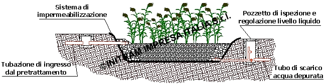 SCHEMATICA DI IMPIANTO DI FITODEPURAZIONE A FLUSSO SOMMERSO ORIZZONTALE